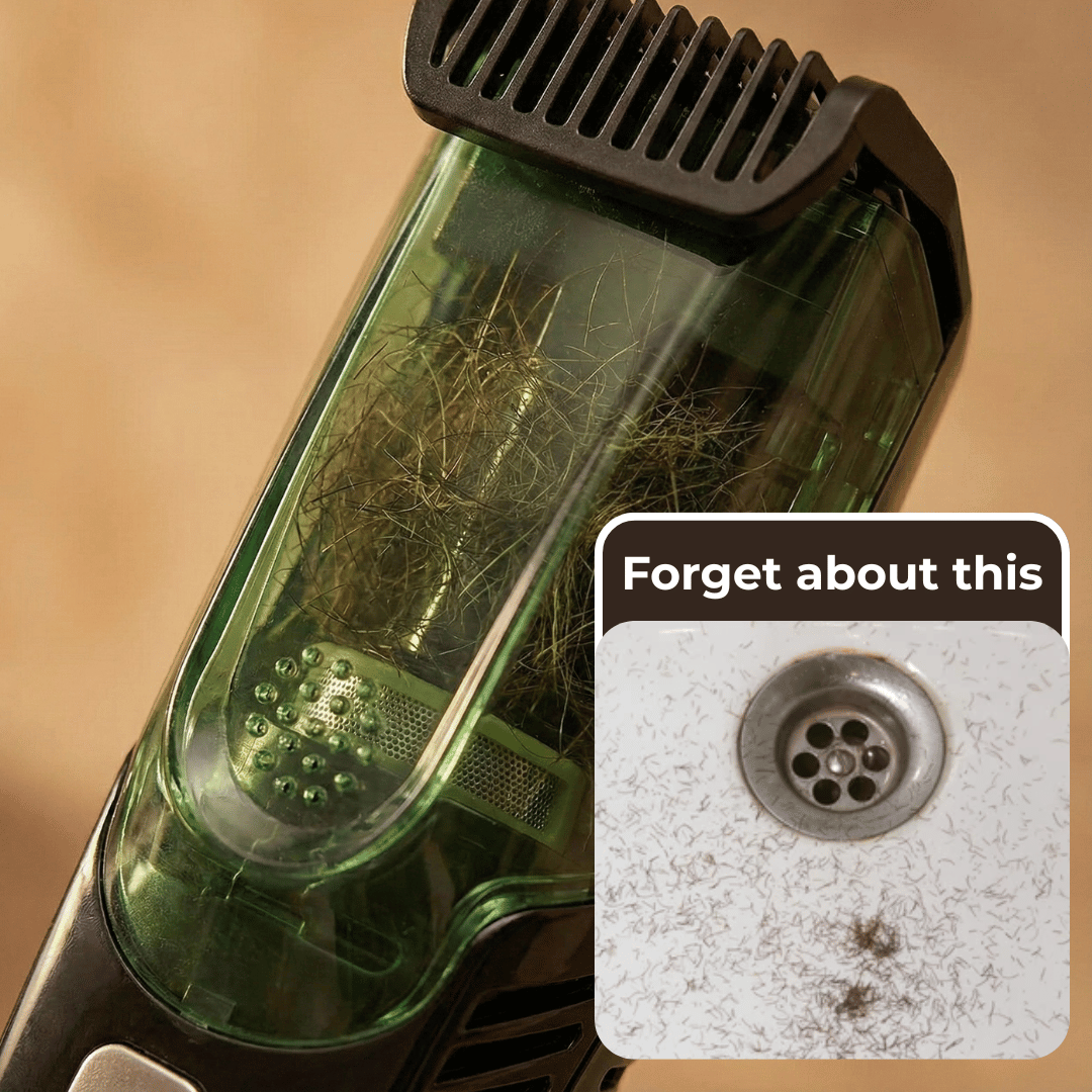 Traditional trimmers scatter tiny hairs everywhere. No matter how careful you are, they escape. You wipe down the sink three times and still find more.
