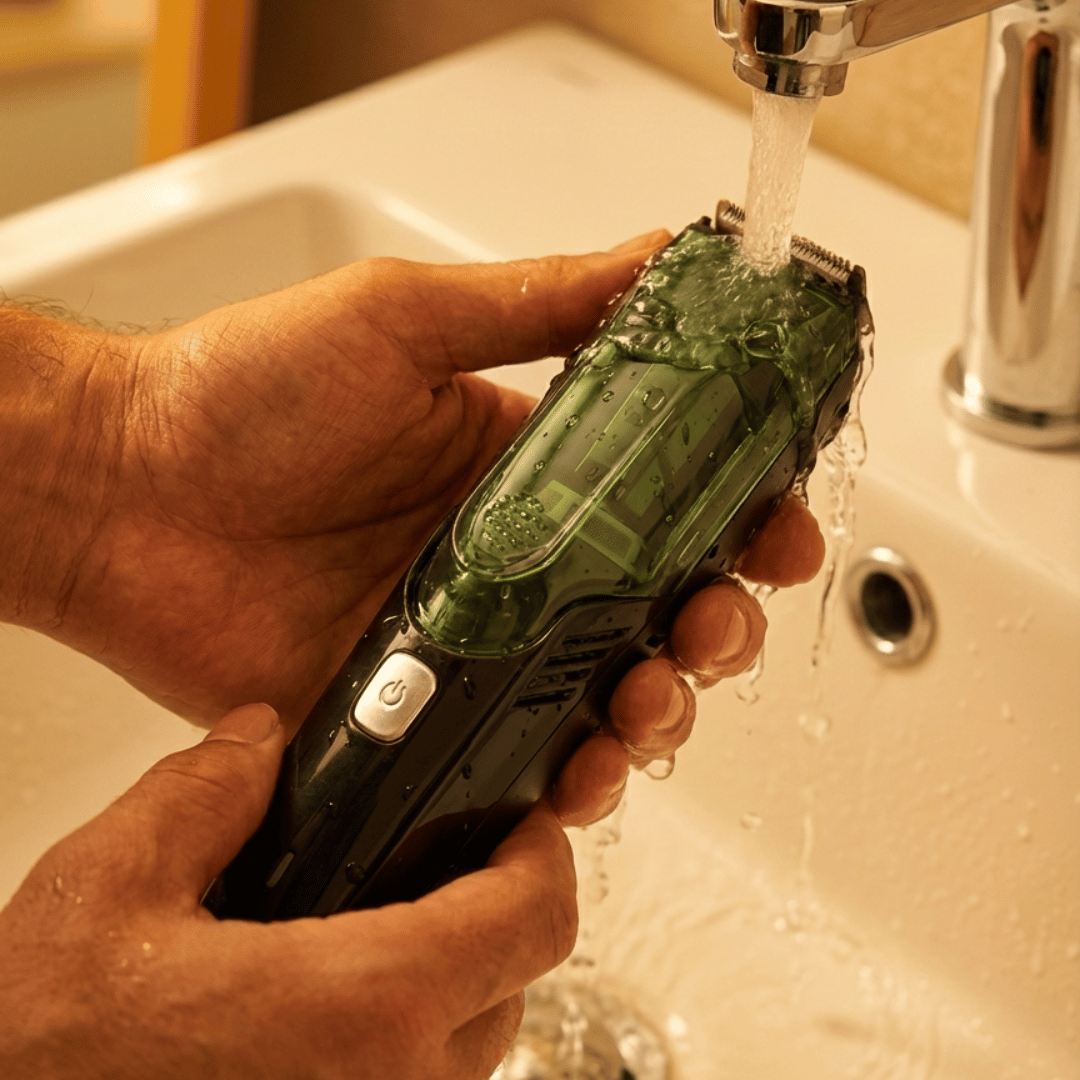 Yes, IPX6 rated. Fully waterproof. You can rinse the entire trimmer under running water. Makes cleaning effortless.